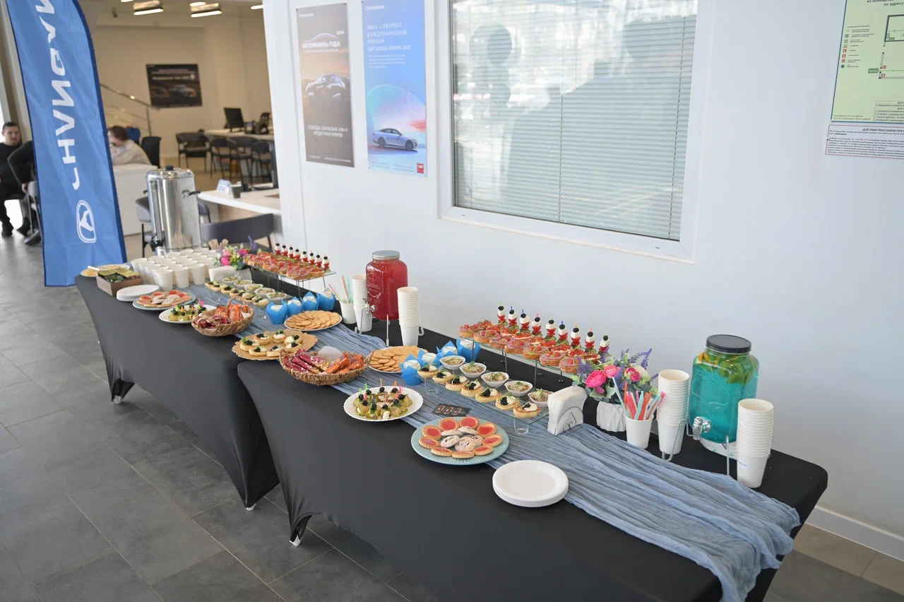 Гости насладились изысканным фуршетом, приняли участие в живой презентации автомобиля - оценили его дизайн, технологии и комфорт.